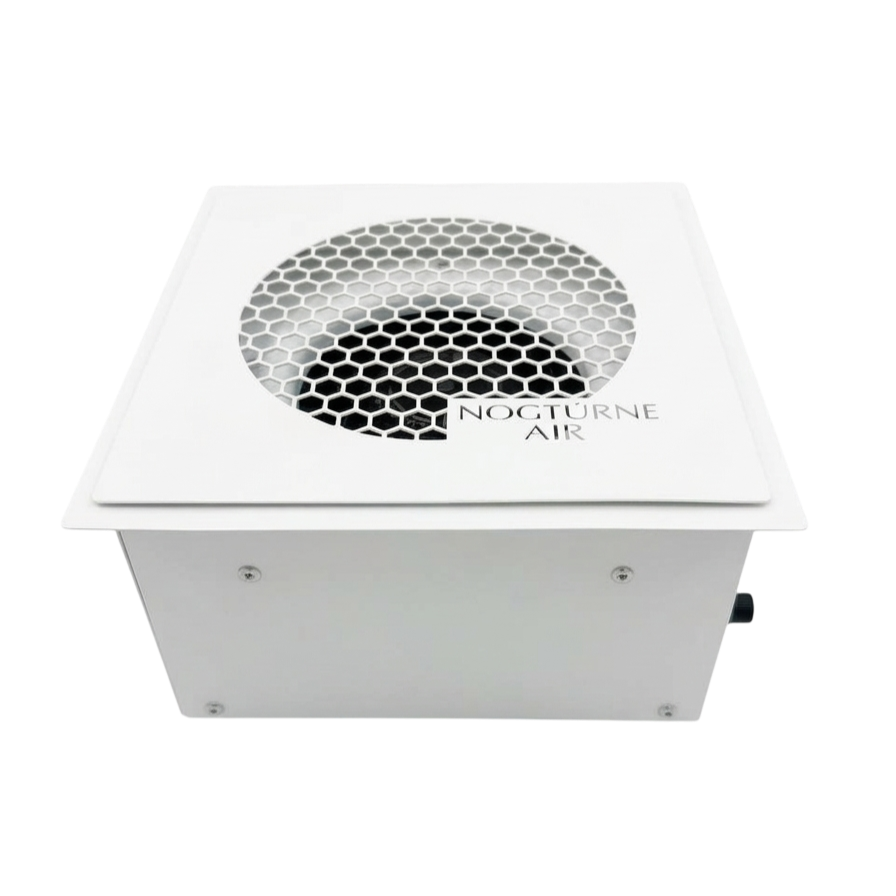 Регулятор мощности (диммер) расположен прямо на корпусе под столом — настраивайте шум и тягу, не отвлекаясь от работы.